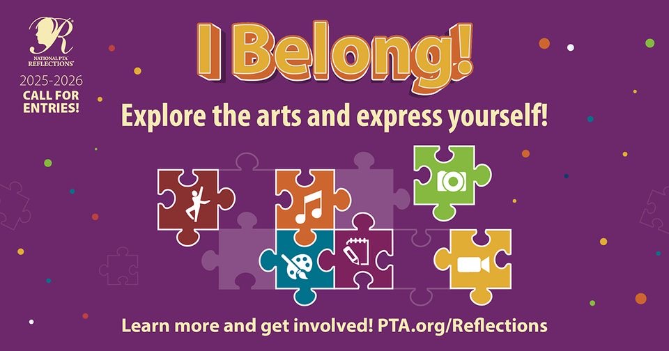 Each year, the PTA Reflections program offers students a platform to express their unique perspectives and interpretation of a student-created theme. For the 2025-2026 school year, the theme is “I Belong!” This concept was created by Ben Morgan from Boise, Idaho as part of the 2023 Reflections Theme Search Contest.
